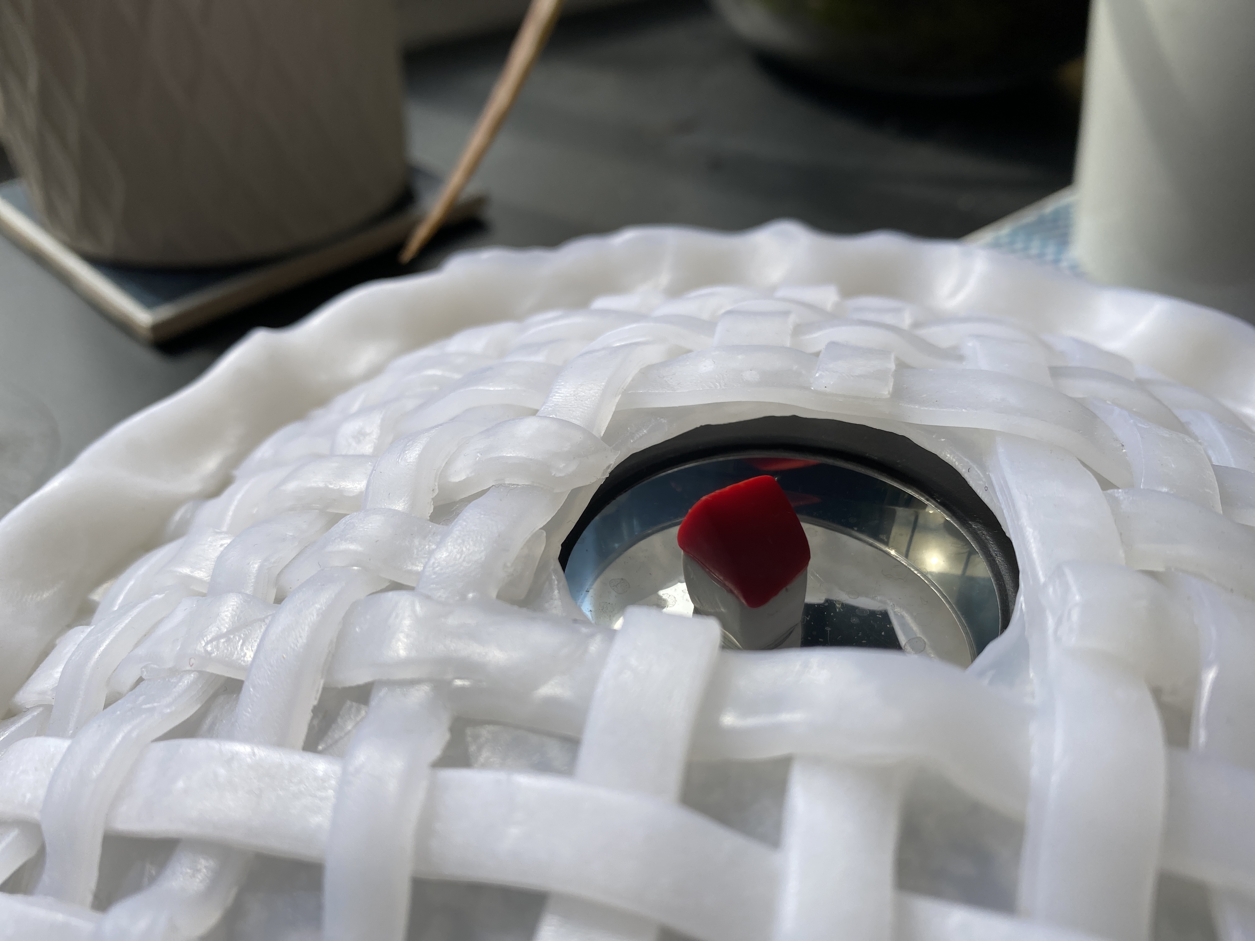 This is an on-going sculpture series since 2021, which I have been experimenting with the idea of using red-roofed house as a character that is form changing. I create sculpture with transparent polymer clay imposing as objects found in or around home. A miniature red roofed house is always seen with the object as if home can be found any where.